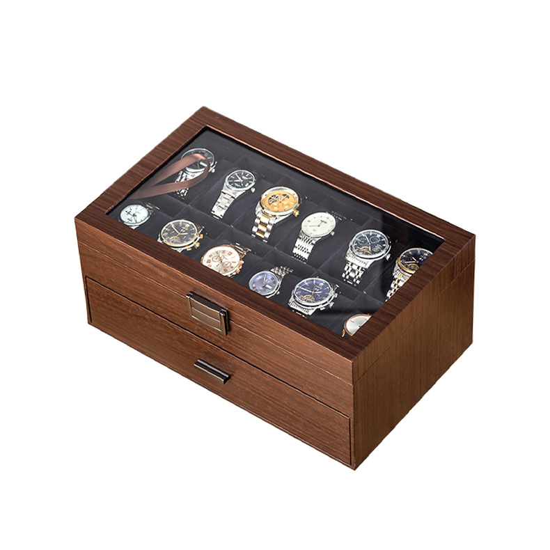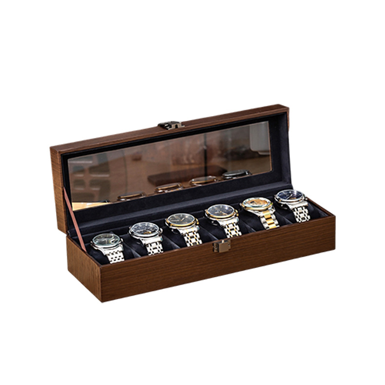 Wood Grain Paper Series Watch Box Jewelry Box Large Capacity Window Transparent Watch Display Box Watch and Jewelry Storage Case